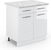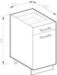 CONTENU DE LA LIVRAISON : Meuble bas de cuisine avec plan de travail, matériel de montage, instructions de montage (sauf indication contraire, les appareils électriques et les décorations ne sont pas inclus)---