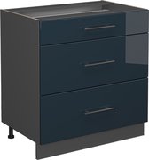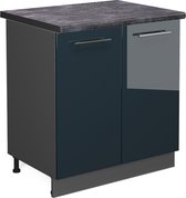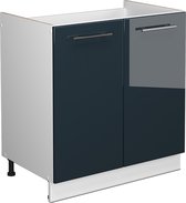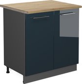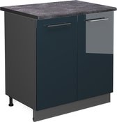 Vicco Countertop Block Fame- Line, Bleu foncé brillant/Anthracite, 80 cm avec étagère, WB Marble