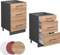Vicco Élément bas de cuisine Fame- Line, Chêne puissant or/ Grijs, 50 cm sans plan de travail