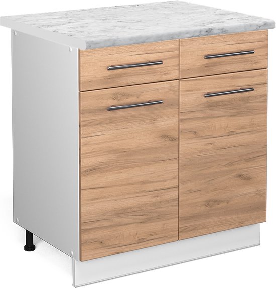 Vicco Élément bas de cuisine Fame- Line, Chêne puissant or/ Wit, 80 cm, WB Marble