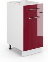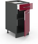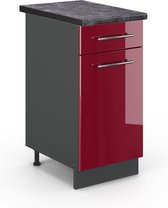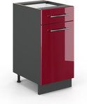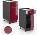 Vicco Élément bas de cuisine Fame- Line, Rouge bordeaux brillant / Grijs, 40 cm sans plan de travail