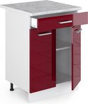 Vicco Élément bas universel R- Line, Rouge bordeaux brillant/ Wit, 60 cm avec tiroirs