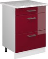 Vicco Élément bas universel R- Line, Rouge bordeaux brillant/ Wit, 60 cm avec tiroirs