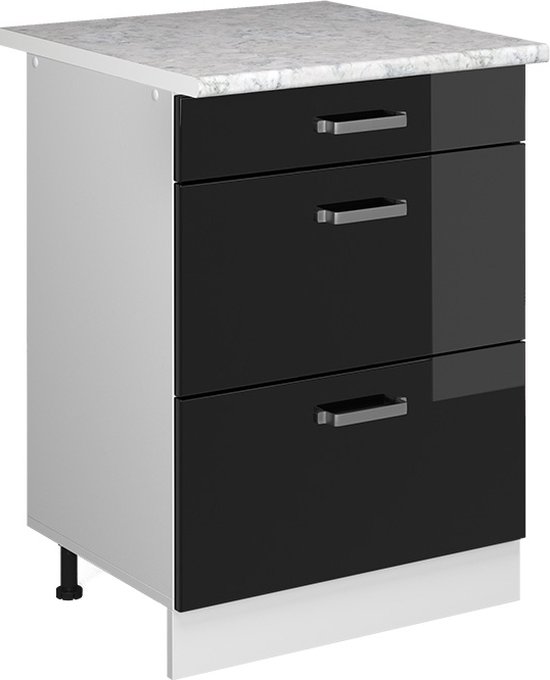 Vicco Élément bas universel R- Line, Zwart brillant/ Wit, 60 cm avec tiroirs