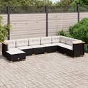 vidaXL - 8 pièces - Ensemble de salon - avec - coussins - poly - rotin - noir