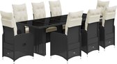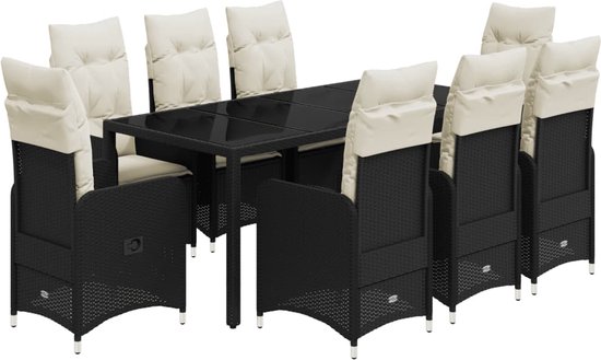 vidaXL - 9 pièces - Set de bistro - avec - coussins - poly - rotin - noir