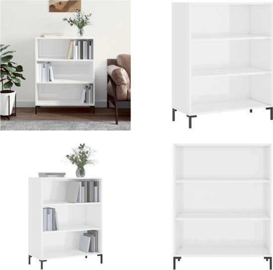 vidaXL Bibliothèque 69-5x32-5x90 cm Bois fini Blanc brillant - Bibliothèque - Bibliothèques - Étagère à Boeken - Armoire à étagères