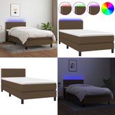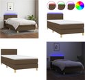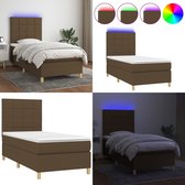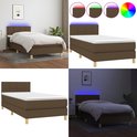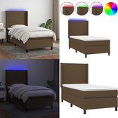 vidaXL Boxspring avec matelas et tissu LED Marron foncé 80x200 cm - Boxspring - Sommiers - Lit - Meubles de couchage