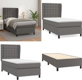 vidaXL Boxspring avec matelas Simili cuir Gris 90x200 cm - Boxspring - Sommiers - Lit - Meubles de couchage