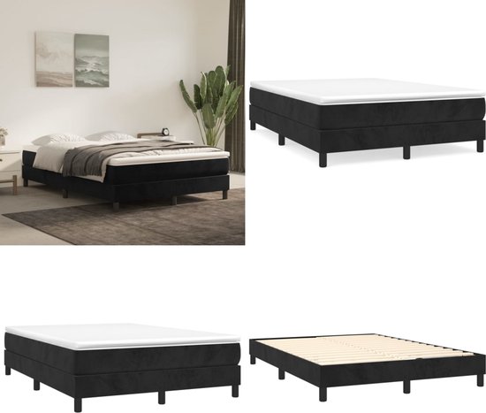 vidaXL Boxspring avec matelas Velours Noir 140x200 cm - Boxspring - Sommiers - Lit - Meubles de couchage
