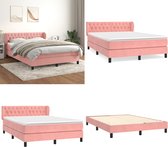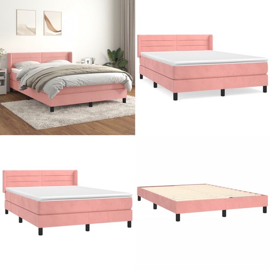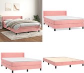 vidaXL Boxspring avec matelas Velours Rose 140x190 cm - Boxspring - Sommiers - Lit - Meubles de couchage