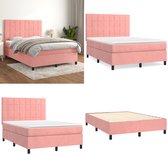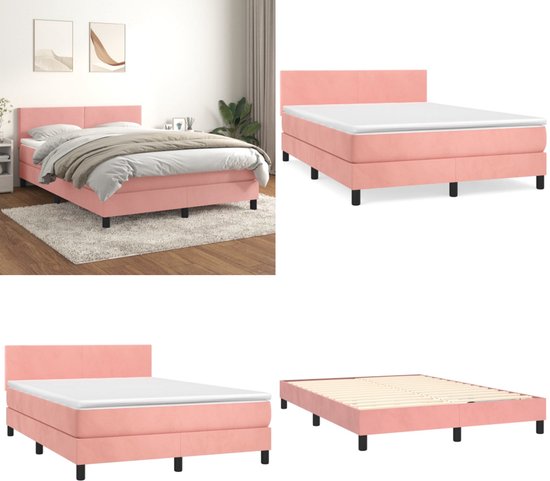 vidaXL Boxspring avec matelas Velours Rose 140x190 cm - Boxspring - Sommiers - Lit - Meubles de couchage