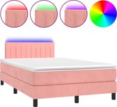 vidaXL-Boxspring-met-matras-en-LED-fluweel-roze-120x200-cm