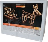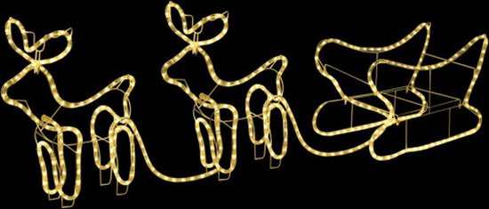 Les rennes et le traîneau sont éclairés par des LED blanches chaudes pour une lueur douce, faisant de la décoration un accroche-regard à l'intérieur et à l'extérieur. Le cordon LED a 36 lumières par mètre et un total de 576 LED. Il est ultra clair et économe en énergie.