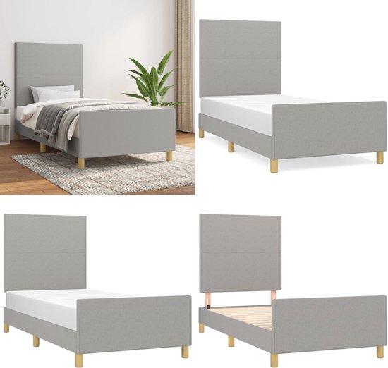 vidaXL Cadre de lit avec tête de lit Tissu Gris clair 100x200 cm - Cadre de lit avec tête de lit - Encadrements de lit avec têtes de lit - Lit - Meubles de couchage