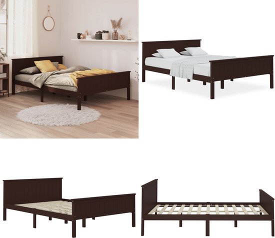 vidaXL Cadre de lit en pin massif marron foncé 120 x 200 cm - Cadre de lit - Encadrements de lit - Cadre de lit en bois - Lit (1x)