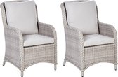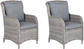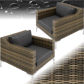 Cet ensemble de chaises de jardin est un accroche-regard dans n'importe quelle pièce. Le cadre en acier robuste est enveloppé de rotin PE tissé à la main, ce qui rend le fauteuil résistant à la rouille et à la moisissure, afin que vous puissiez profiter d'années de confort d'assise. La chaise de jardin est conçue avec un dossier et des accoudoirs incurvés et avec une forme ergonomique pour un confort maximal. Le kussen inclus offre un soutien supplémentaire en position assise.