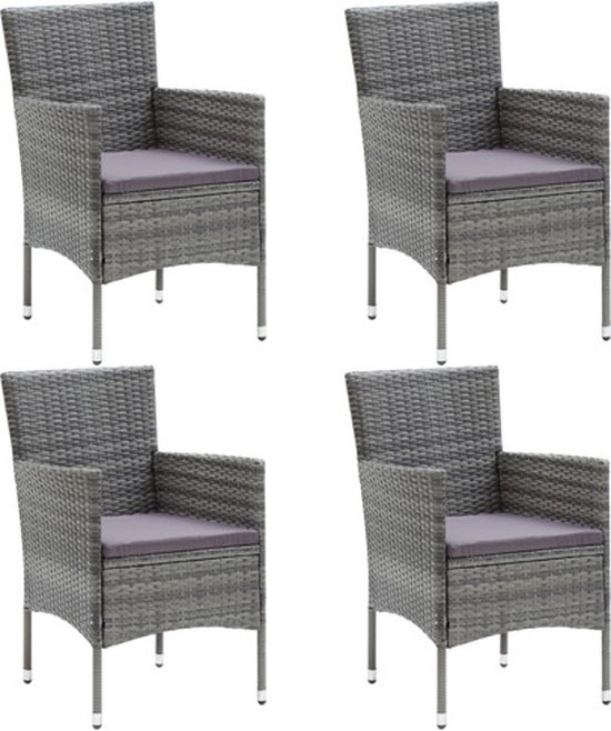 vidaXL Chaises de jardin de vidaXL 4 pcs Poly Rotin Gris