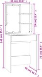 - Dimensions de la coiffeuse : 60 x 40 x 140 cm (L x P x H)