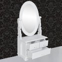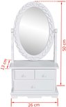 Il y a un miroir ovale élégant au centre. Dans la partie inférieure se trouvent 2 petits tiroirs et 1 grand tiroir où vous pouvez ranger des choses. Les tiroirs peuvent être facilement retirés pour le nettoyage.