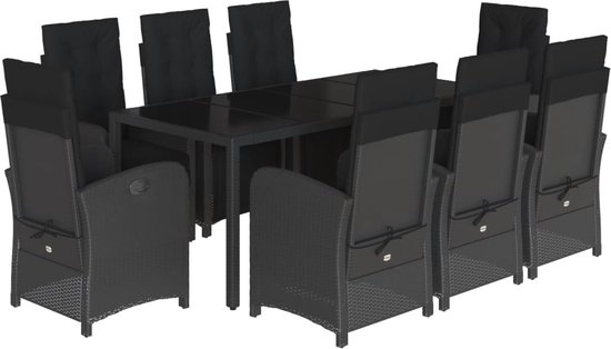 vidaXL-Ensemble de jardin 9 pièces-poly-rotin-noir