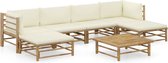 vidaXL Ensemble de salon 6 pièces avec coussins en bambou blanc crème