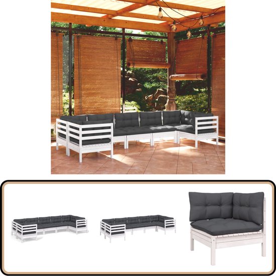 vidaXL Ensemble de salon 7 pièces avec coussins Bois de pin Blanc