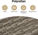 - Matériau: rotin PE, acier enduit de poudre et verre trempé
