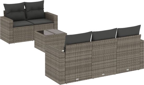 vidaXL Ensemble de salon - Ensembles lounge - Ensemble de jardin - Banc de jardin - Ensemble de salon 6 pièces avec coussins en résine tressée grise (1x)