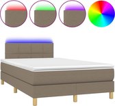 vidaXL Sommier tapissier avec matelas et tissu LED Taupe 120x200 cm