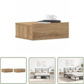 vidaXL Table de chevet - 50x36x40 cm - Table de chevet flottante en Chêne fumé - Fixation murale - Table de chevet marron - Table de chevet en bois - Table de chevet de salle de bain - Armoire au-dessus du lit - Espace de rangement