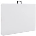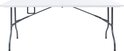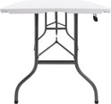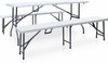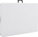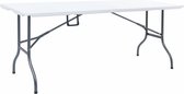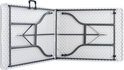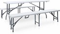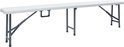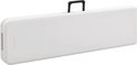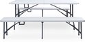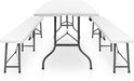 Le cadre en acier enduit de poudre garantit que la table est solide et durable. Le plastique HDPE résistant aux intempéries et à l'eau garantit que l'ensemble de table peut être nettoyé facilement. Parce qu'elle est très légère, la table peut être facilement transportée. Lorsqu'ils ne sont pas utilisés, la table et les bancs peuvent être pliés et rangés. Lorsque l'ensemble est plié, il peut être facilement déplacé grâce à la poignée intégrée.