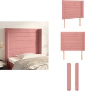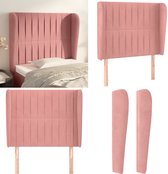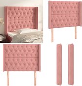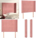 vidaXL-Tête de lit-avec-bords-103x16x118/128-cm-velours-rose - Tête de lit - Têtes de lit - Tête de lit - Tête de lit en bois