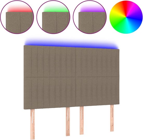 vidaXL Tête de lit LED 144x5x118/128 cm Tissu Taupe - Tête de lit - Têtes de lit - Tête de lit - Tête de lit en bois