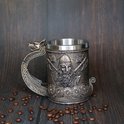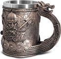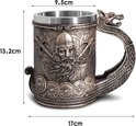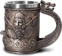 Viking Warrior Tasse à Bières Stein Doublure en acier inoxydable – Norse Draon Drakkar Tasse à boisson nordique Tankard pour cadeau de collection 550 ml