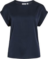 Belle blouse à encolure ronde et manches courtes de la Vila.Aspect satin devant, tissu t-shirt souple dans le dos. Un très joli modèle facile à associer tout au long de l'année.Composition : Devant : 100% Polyester recyclé ; Dos : 95 % viscose, 5 % élasthanne.