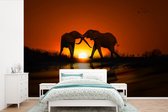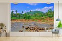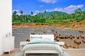 Vinyle Papier peint photo - Un groupe d'éléphants se baigner dans le flux Ma Oya dans Pinnawala sur Ceylan largeur 525 cm x hauteur 350 cm - impression sur le papier peint photo (disponible en 7 tailles)