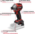 La clé à chocs sans fil Einhell Professional TP-CI 18/250-C Li BL Solo est une machine puissante et fait partie de la plateforme de batterie Power X-Change. Dans le cadre de la plateforme de batterie Power X-Change, vous pouvez utiliser la clé à chocs sans fil en combinaison avec toutes les batteries et tous les chargeurs de la plateforme de batterie. La clé à chocs est alimentée par un moteur sans balais Einhell . Ce moteur sans balais offre plus de puissance et une durée de vie plus longue que les moteurs à balais de charbon classiques. Après enregistrement en ligne, le moteur brushless bénéficie d'une garantie de 10 ans. Compact, léger mais puissant : la clé à chocs sans fil est environ 30 % plus compacte que les clés à chocs comparables. Cela maximise la flexibilité et la facilité d’utilisation.