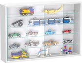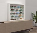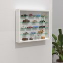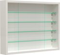 Une vitrine blanche pratique qui peut être accrochée au mur ou utilisée debout pour ranger et exposer votre collection ou d'autres objets. Cette vitrine dispose de 4 étagères en verre transparent de seulement 4,5 cm de profondeur afin que les objets plus petits et étroits soient plus visibles. La vitrine murale a une paroi arrière stable en une seule pièce et 2 portes coulissantes. Les portes coulissantes en verre et les étagères en verre sont en verre de sécurité ESG. Peut être utilisé comme vitrine murale suspendue ou comme vitrine debout grâce à un montage mural simple. Ce modèle de vitrine est idéal pour ranger et présenter vos collections de, entre autres, voitures miniatures, figurines, trains miniatures, montres en cristal, coquillages, pièces de monnaie et bien sûr un bel accroche-regard pour votre salon, bureau ou magasin. Les portes coulissantes en verre protègent votre collection contre la saleté et la poussière et sont faciles à ouvrir et à fermer pour ajouter à votre collection ou afficher rapidement un article de la vitrine. Les dimensions totales sont hautes 40 x largeur 50 x profondeur 7 cm. Étagères en verre de 50 cm de large x 4,5 cm de profondeur. La livraison est en plusieurs parties, y compris les instructions de montage et le matériel de montage