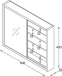 Vitrine murale suspendue sur pied - étagères en verre largeur 50 cm x profondeur 4,5 - portes coulissantes