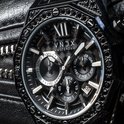 Une montre robuste pour un homme sage. Équipé d'un boîtier de couleur noire brossée, combiné avec des pierres Swarovski .