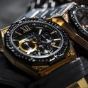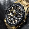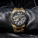 Une montre robuste pour un homme sage. Équipé d'un boîtier de couleur or brossé, combiné avec des pierres Swarovski .
