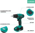 Avec pas moins de 19 positions de vis différentes (réglages de couple) et un réglage de perçage puissant, vous avez un contrôle total sur chaque tâche. Du travail de vissage délicat au serrage ultra-fort des armatures, cette machine s'adapte sans effort à vos besoins. Le moteur délivre un couple élevé de 25 Nm et grâce à l'envergure du mandrin de 0,8 à 10 mm, la machine est adaptée à tous les embouts et forets courants. De cette façon, vous avez toujours les bons outils à portée de main !