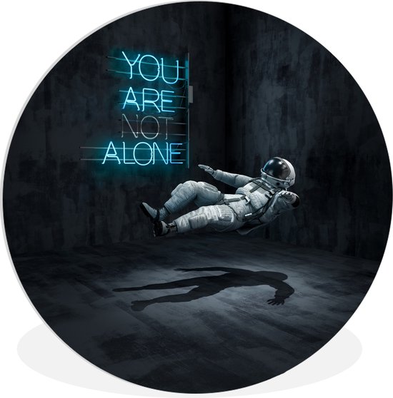 Voyageur de l'espace flottant dans une pièce avec éclairage néon Assiette en plastique cercle mural ⌀ 60 cm - impression photo sur cercle mural / cercle vivant (décoration murale)