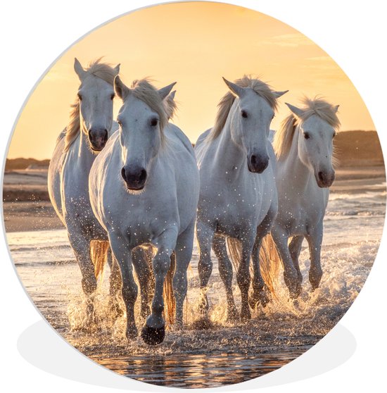 Wall Circle - Wall Circle Indoor - Paarden - Water - Plage - Animaux - 30x30 cm - Décoration murale - Peintures Ronds