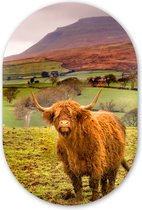 Wall Oval - Décoration murale en plastique - Peinture ovale - Highlander écossais - Berg - Clôture - 40x60 cm - Forme miroir ovale sur plastique