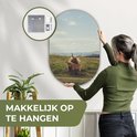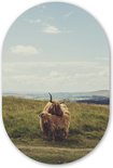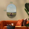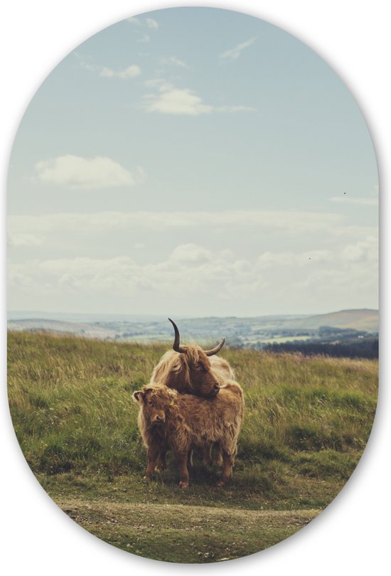 Wall Oval - Décoration murale en plastique - Peinture ovale - Highlanders écossais - Herbe - Nuages - Animaux - 60x90 cm - Forme miroir ovale sur plastique