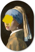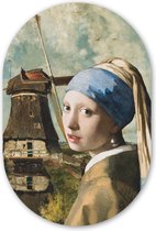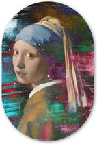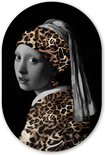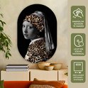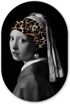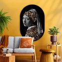 Wall Oval - Décoration murale en plastique - Peinture ovale - La jeune fille à la perle - Johannes Vermeer - Imprimé panthère - 80x120 cm - Forme miroir ovale sur plastique