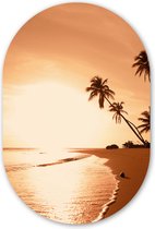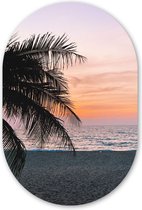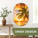 Wall Oval - Décoration murale Plastique - Tableau Ovale - Coucher de Soleil - Palmier - Nuages - Mer - Plage - 60x90 cm - Forme Miroir Ovale sur Plastique
