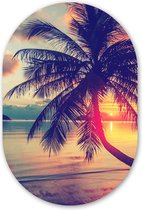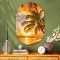 Ovale mural Paysage - Nature - Palmier - Soleil - Soir - Forex Décoration murale